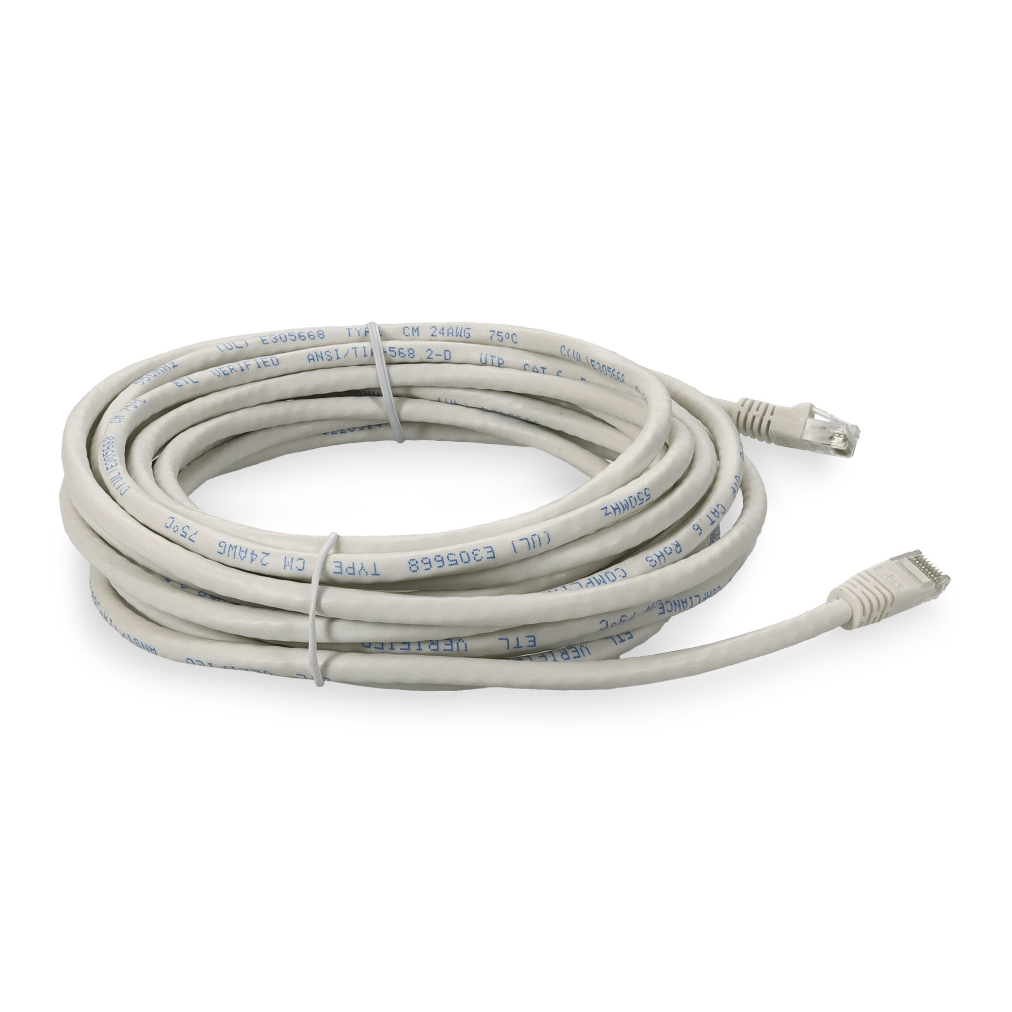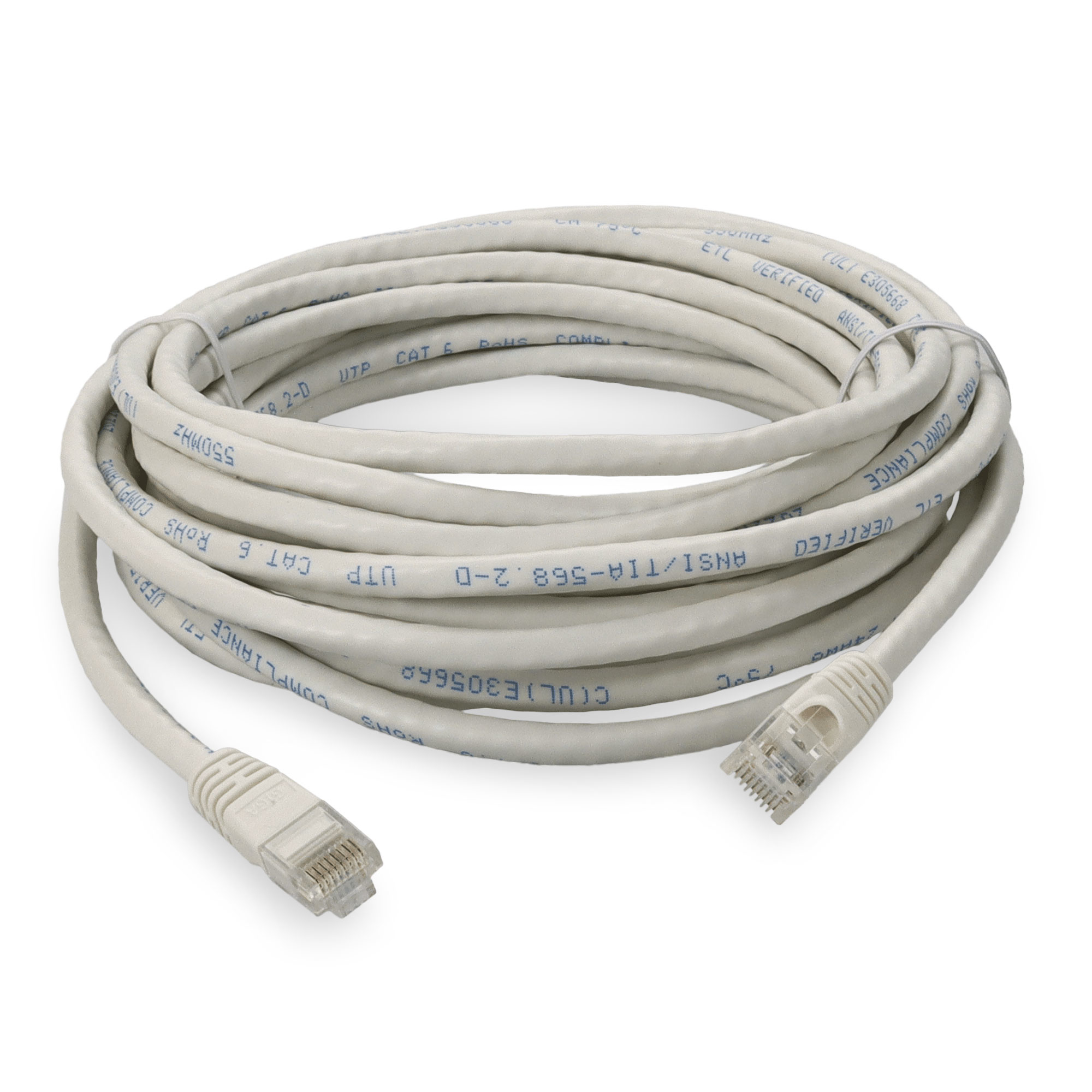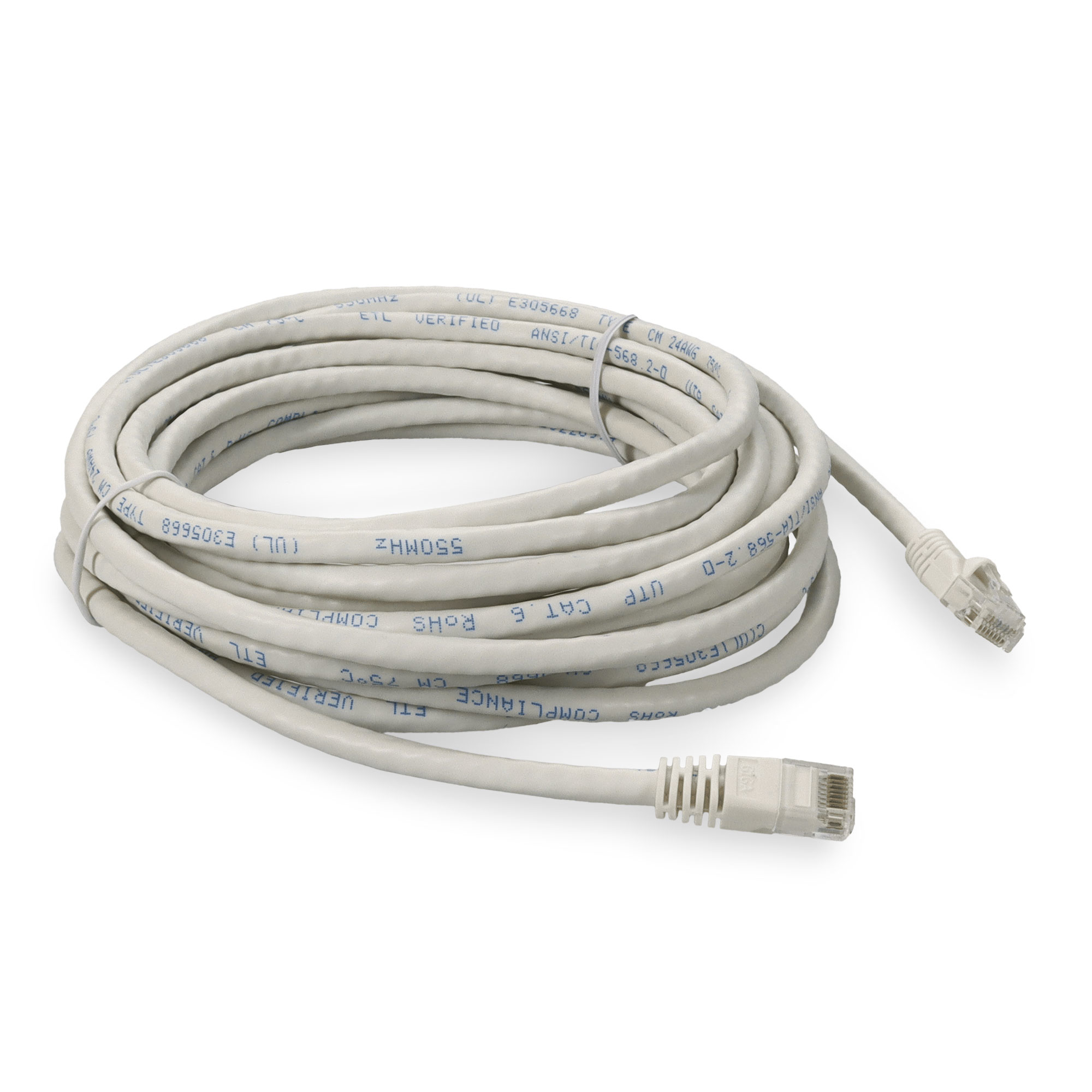 This is a 13.72m (45.0ft) RJ-45 (male) to RJ-45 (male) white Cat6 UTP PVC-rated patch straight cable that is used for high speed data transfer. Our patch cables are 100% compliant for all of your networking needs and are guaranteed by federal law to not affect or void OEM warranties.