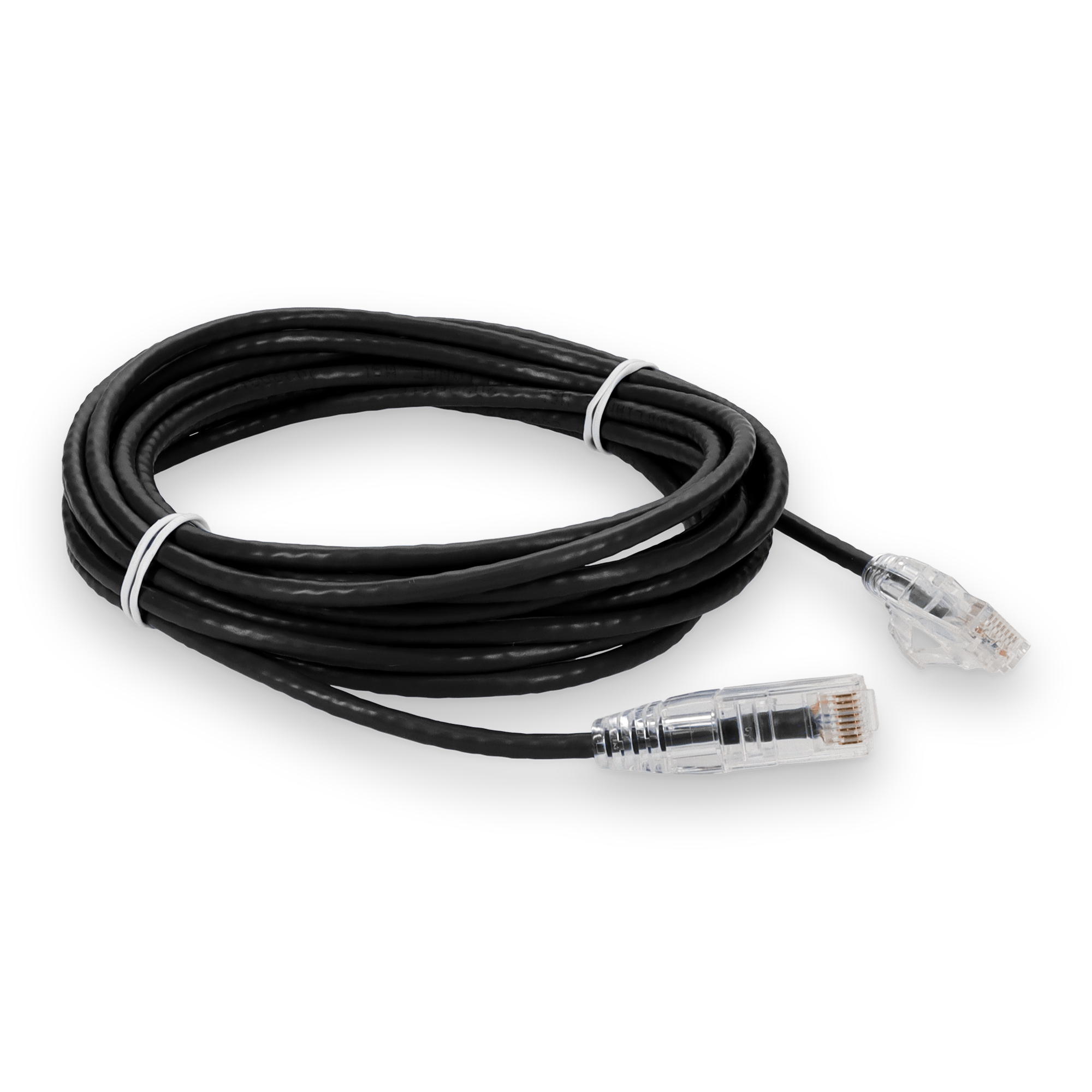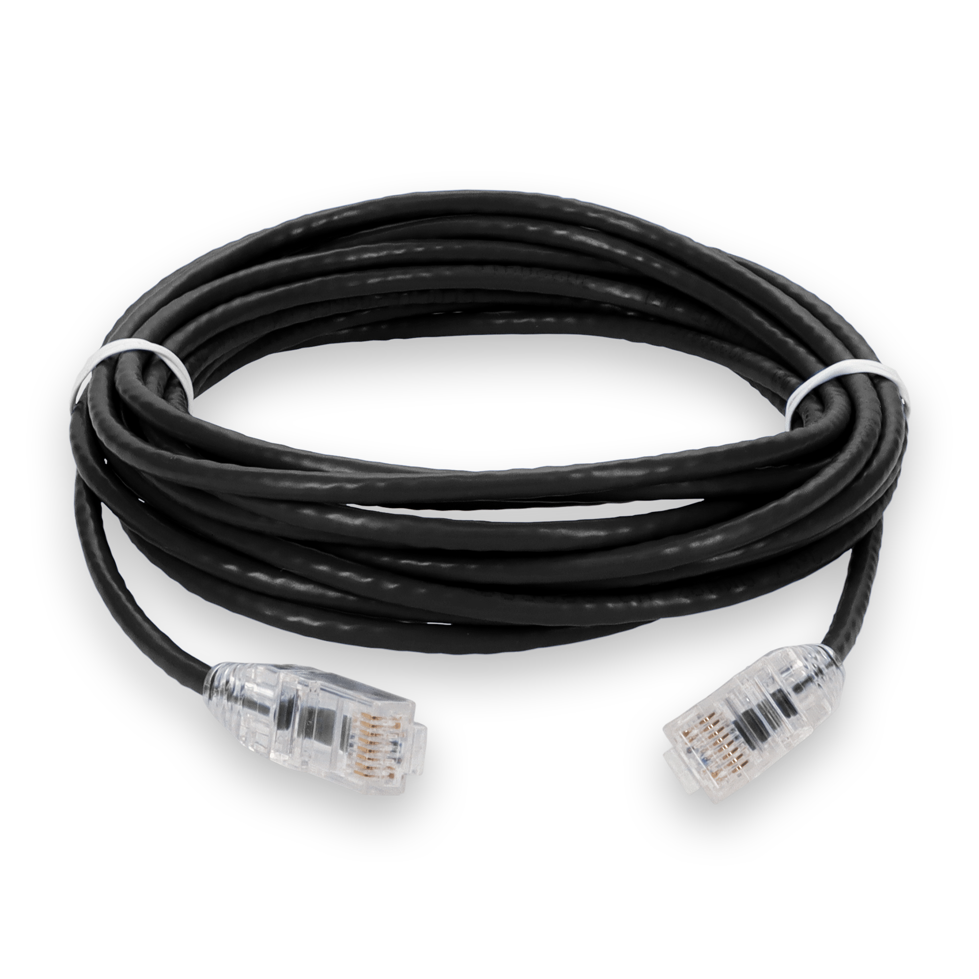 This is a 13.72m (45.0ft) RJ-45 (male) to RJ-45 (male) Black Cat6A Slim UTP PVC-rated patch straight cable that is used for high speed data transfer. Our patch cables are 100% compliant for all of your networking needs and are guaranteed by federal law to not affect or void OEM warranties.
