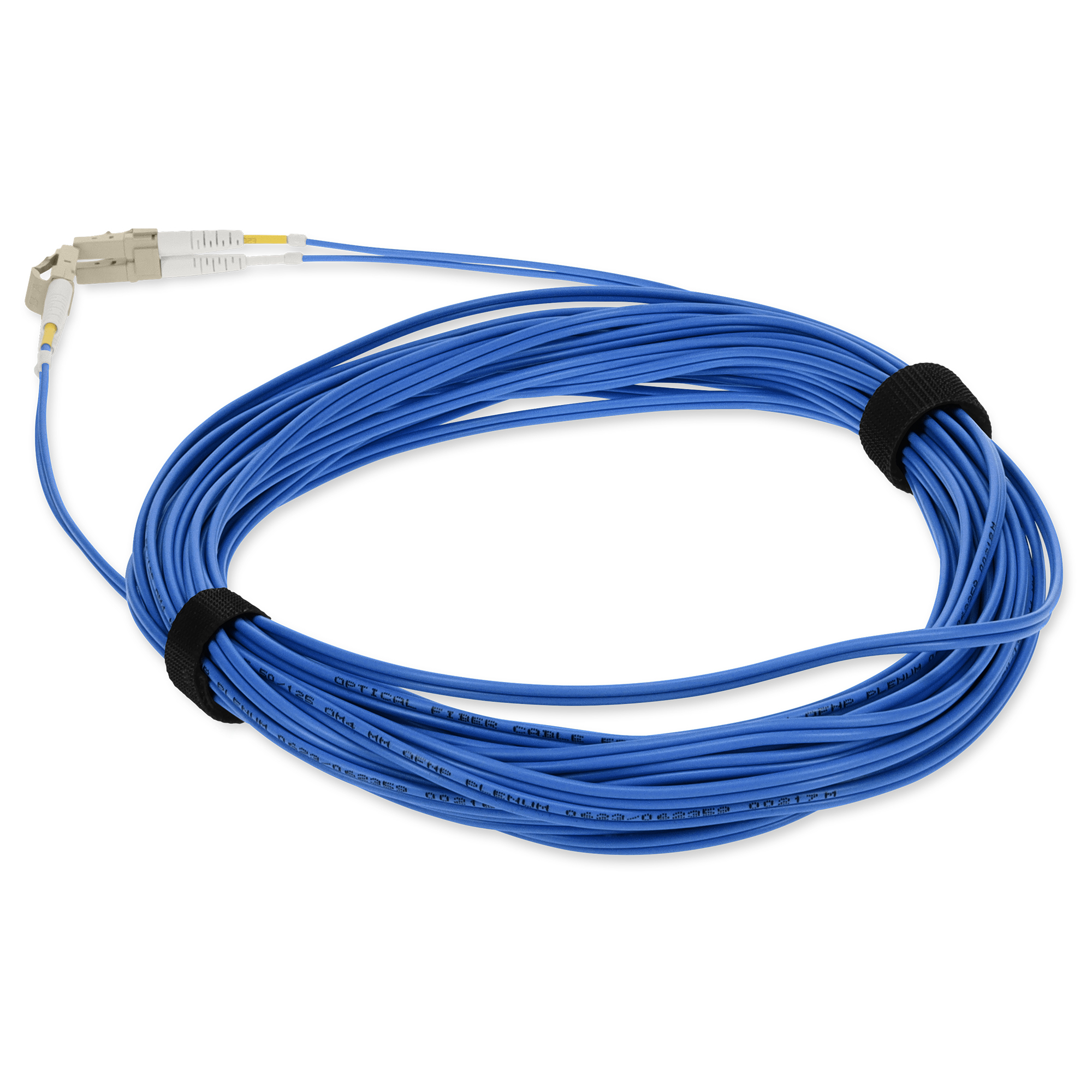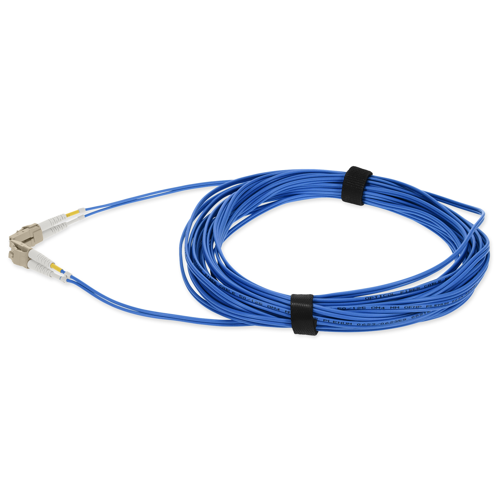 This is a 3m LC (male) to LC (male) blue duplex plenum-rated fiber patch cable. An OM4 cable has a core size of 50m microns that supports 10 Gigabit Ethernet at lengths measuring up to 550 meters, and 100 Gigabit Ethernet measuring up to 150 meters and is reverse compatible with OM3. Plenum-rated cables must self-extinguish and prevent re-ignition. A duplex cable is a two-strand fiber optic patch cable that works best with transceivers that both transmit and receive. Our patch cables are 100% compliant for all of your networking needs. Our products are guaranteed by federal law to not affect or void OEM warranties.