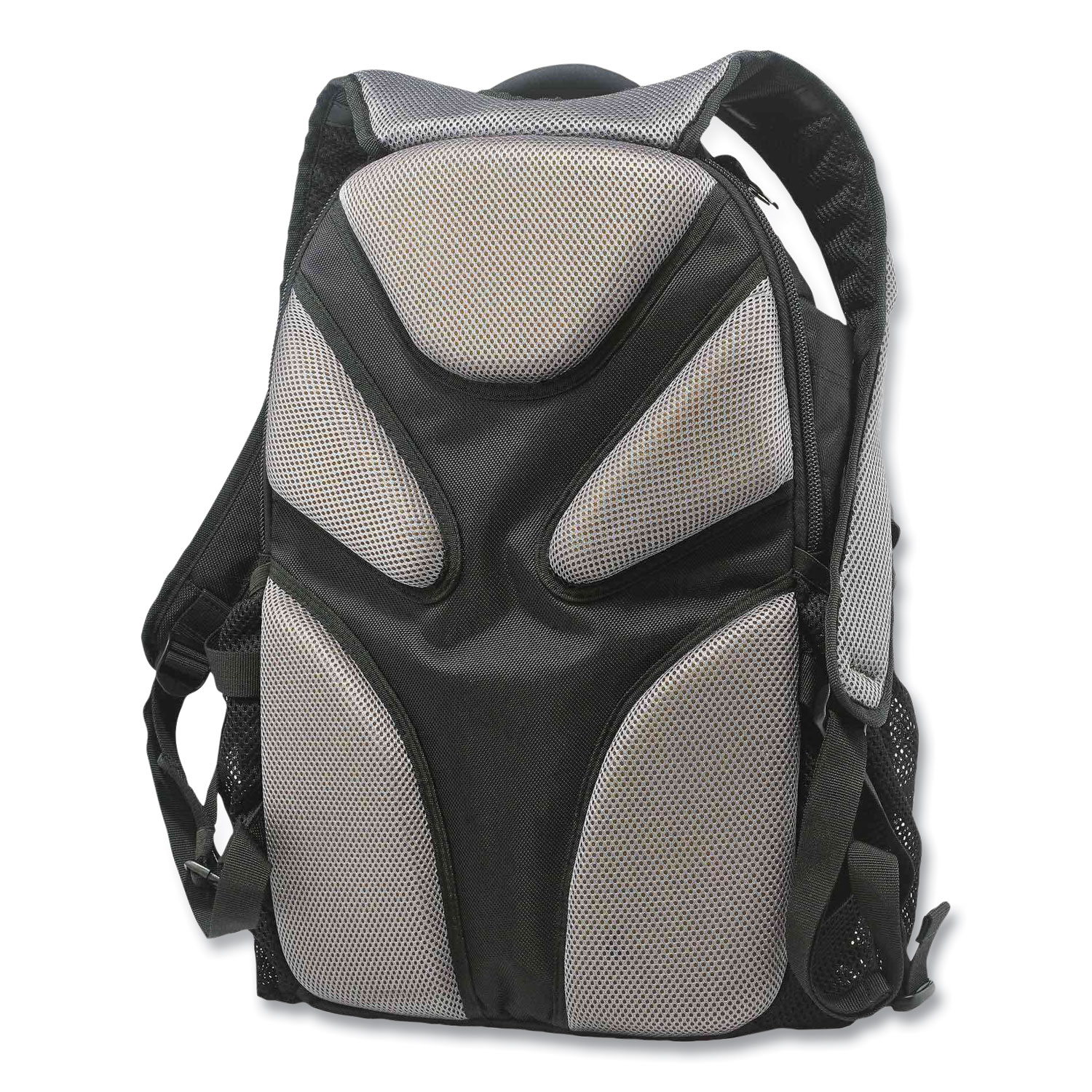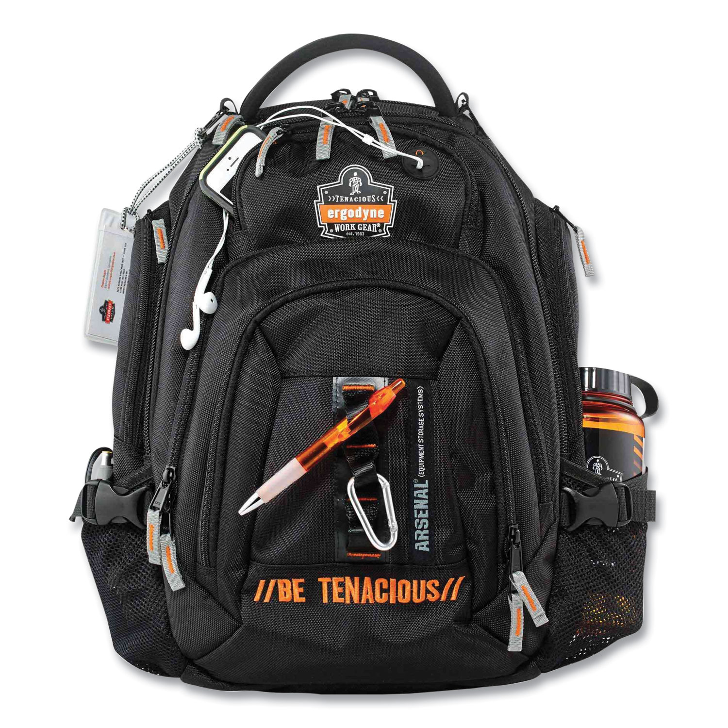 Mobile Office Backpack offers a comfortable way to transport laptops, tablets, and other office supplies. 1,200D ballistic polyester with water-resistant backing. Four main compartments including reinforced computer sleeve. Two vertical side pockets with storm drain ventilation. Crush-proof top container for eyewear and other items. Personal items pocket with headphones port. Padded shoulder straps for increased comfort under heavy weight. Cushioned back padding with airflow design for ventilation. Strong YKK zippers. For Use With: Gear; Color(s): Black; Color Family: Black; Material(s): Polyester.