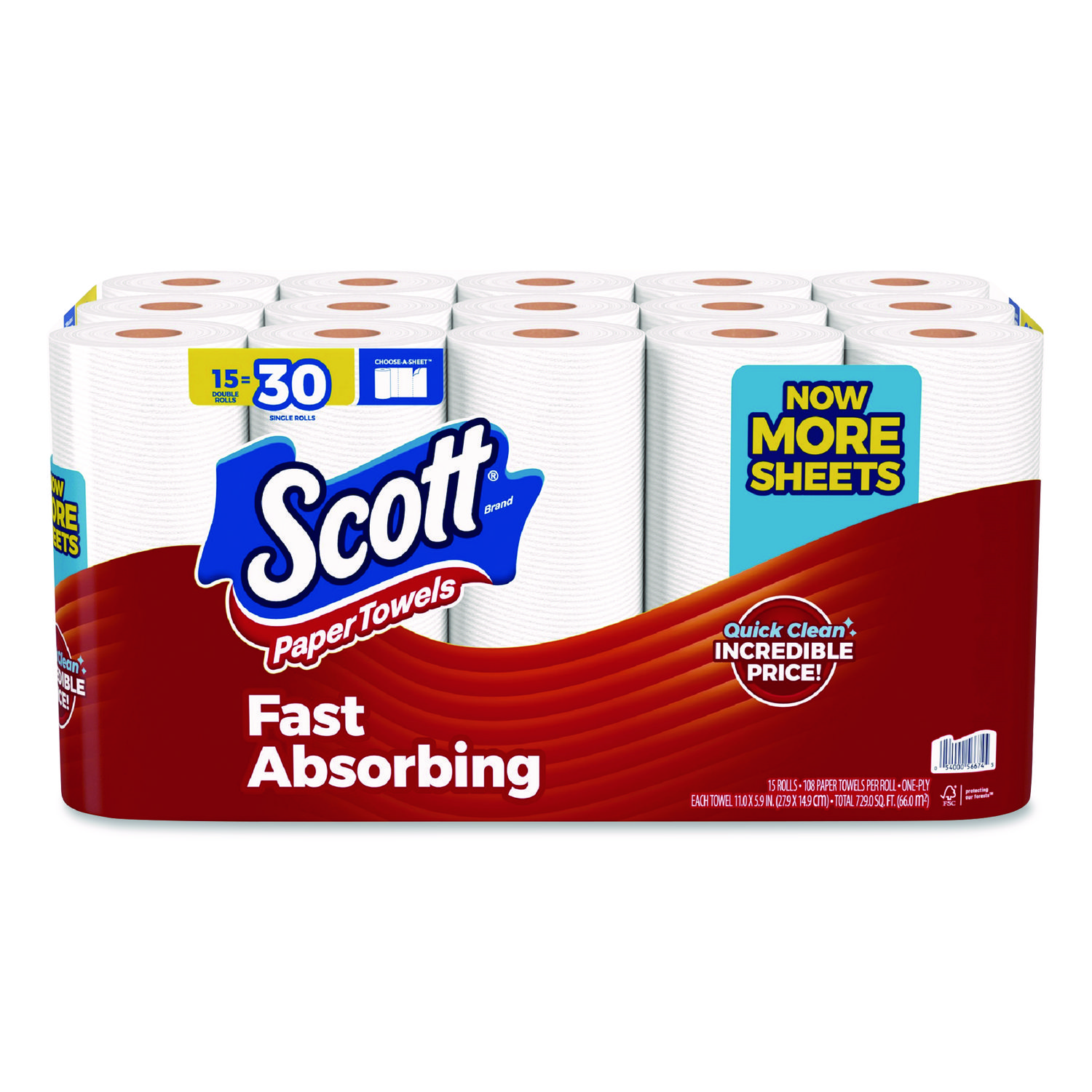 Scott® Paper Towels Choose-A-Sheet with Quick Absorbing Ridges get the job done faster to keep you going about your business and let you get back to what matters most. Scott® disposable kitchen paper towels soak up spills quickly and won't let life's messes slow you down. Offering the value you expect and the quality you can rely on from the Scott® brand. Towel/Wipe Type: Perforated Roll Towels; Material(s): Paper; Number of Plies: 1; Color(s): White.