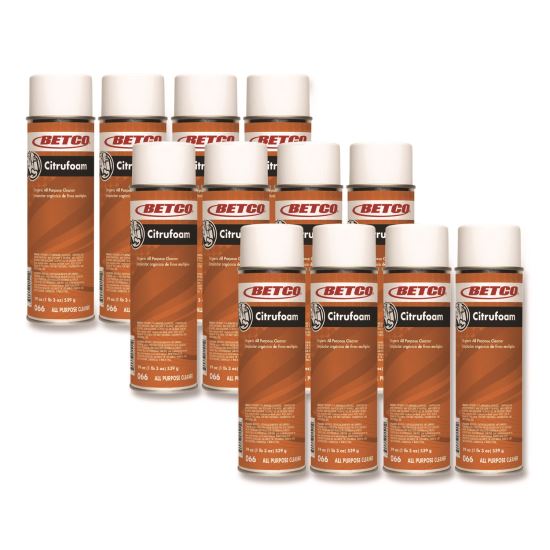 This all purpose cleaner is effective in the removal of stubborn soils on most washable surfaces. Formulated with natural orange citrus solvents, Citrufoam quickly dissolves grease, oil, crayon marks, lipstick, smoke film, soot, ink, coffee, cola and more. This product's clinging foam provides extended contact time when cleaning vertical and horizontal surfaces to eliminate objectionable odors at the source. Application: Degreaser/Cleaner; Applicable Material: Most Washable Surfaces; Chemical Compound: d-Limonene; Dirt Types: Grease.