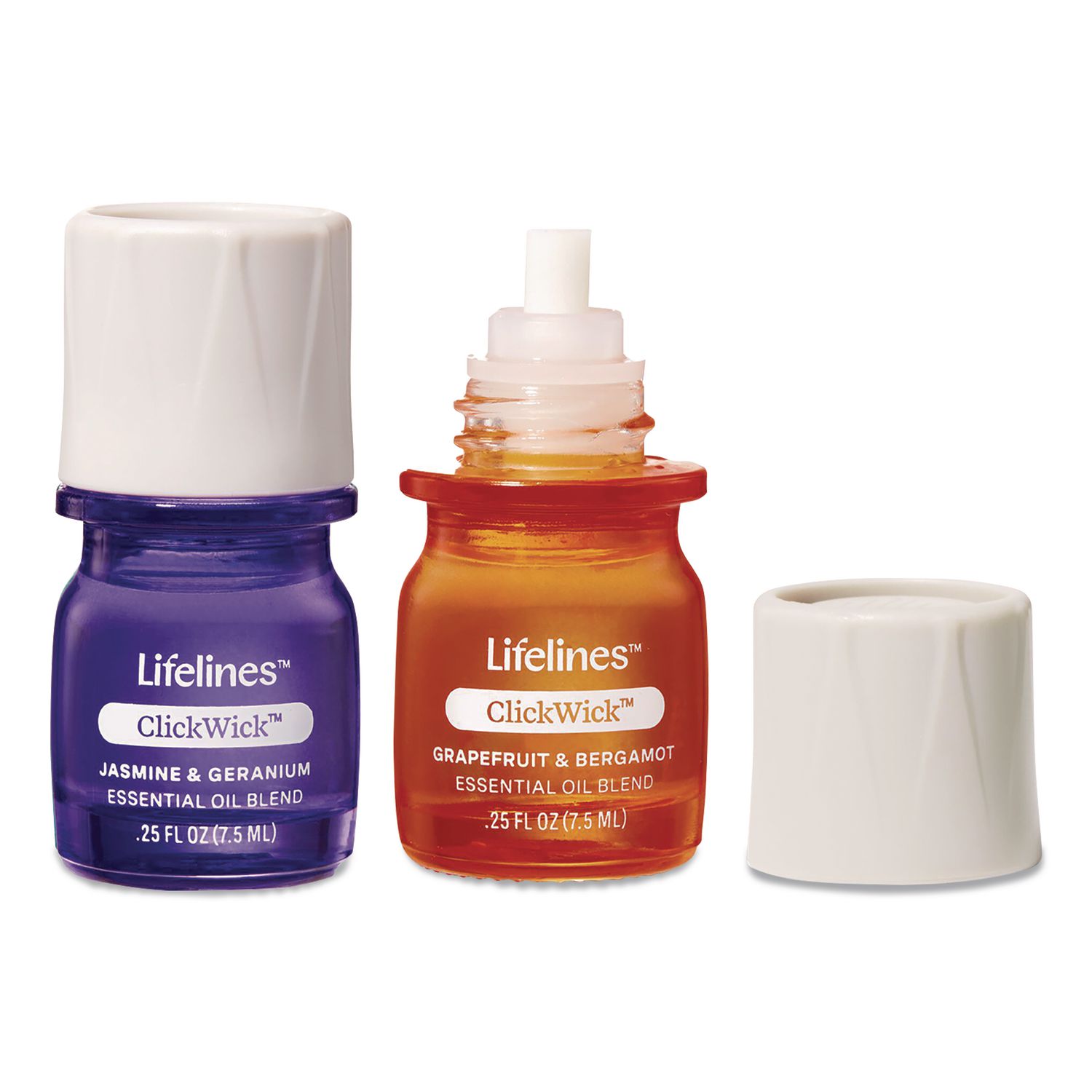 Designed exclusively for our ClickWick™ Diffusers. Lifelines® ClickWick™ Refills feature our patent-pending diffusion cap and specially formulated essential oil blends. Pair them with any Lifelines® ClickWick™ product to transform your space into a unique sensory experience. Lifelines® blends are specially created for an extraordinary aroma experience using 100% pure essential oils and sustainably sourced botanicals. They are free from parabens, phthalates, dyes, and formaldehyde. Scent: Citrus Grove; In Bloom; Physical Form: Oil; Volume Capacity: 0.25 oz; Product Packaging: Bottle.