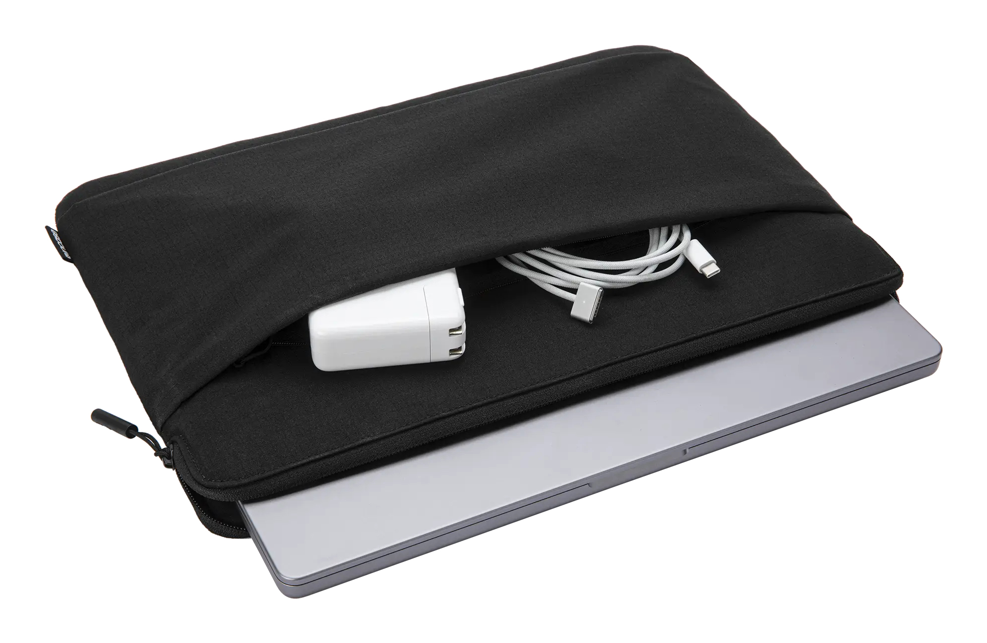 Soft-brushed polyester twill interior. This secure pocket helps the hybrid laptop pouch protect your computer from bumps and scratches.