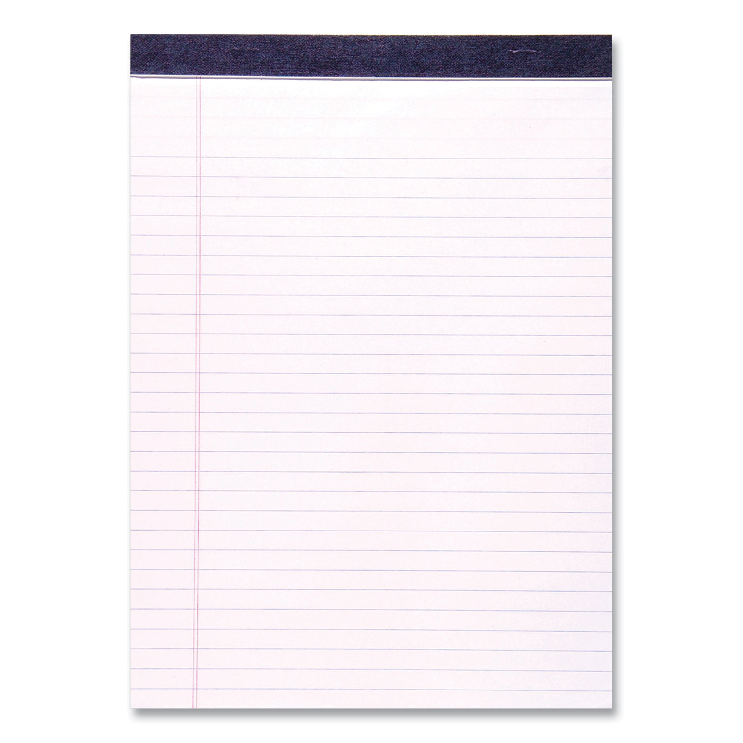 Legal paper pad. Smooth, 15 lb writing paper has legal ruled blue lines and double red margin lines. Sheets are micro-perforated for EZ removal. 34-pt chipboard back adds stability. Stapled and taped construction. Full sheet size is 8.5" x 11.75", and tear-out size is 8.5" x 11". Pad-Binding Type: Stapled/Taped; Pad-Binding Edge: Top; Sheets per Pad: 50; Sheet Size (Bound-Side First): 8.5 x 11.