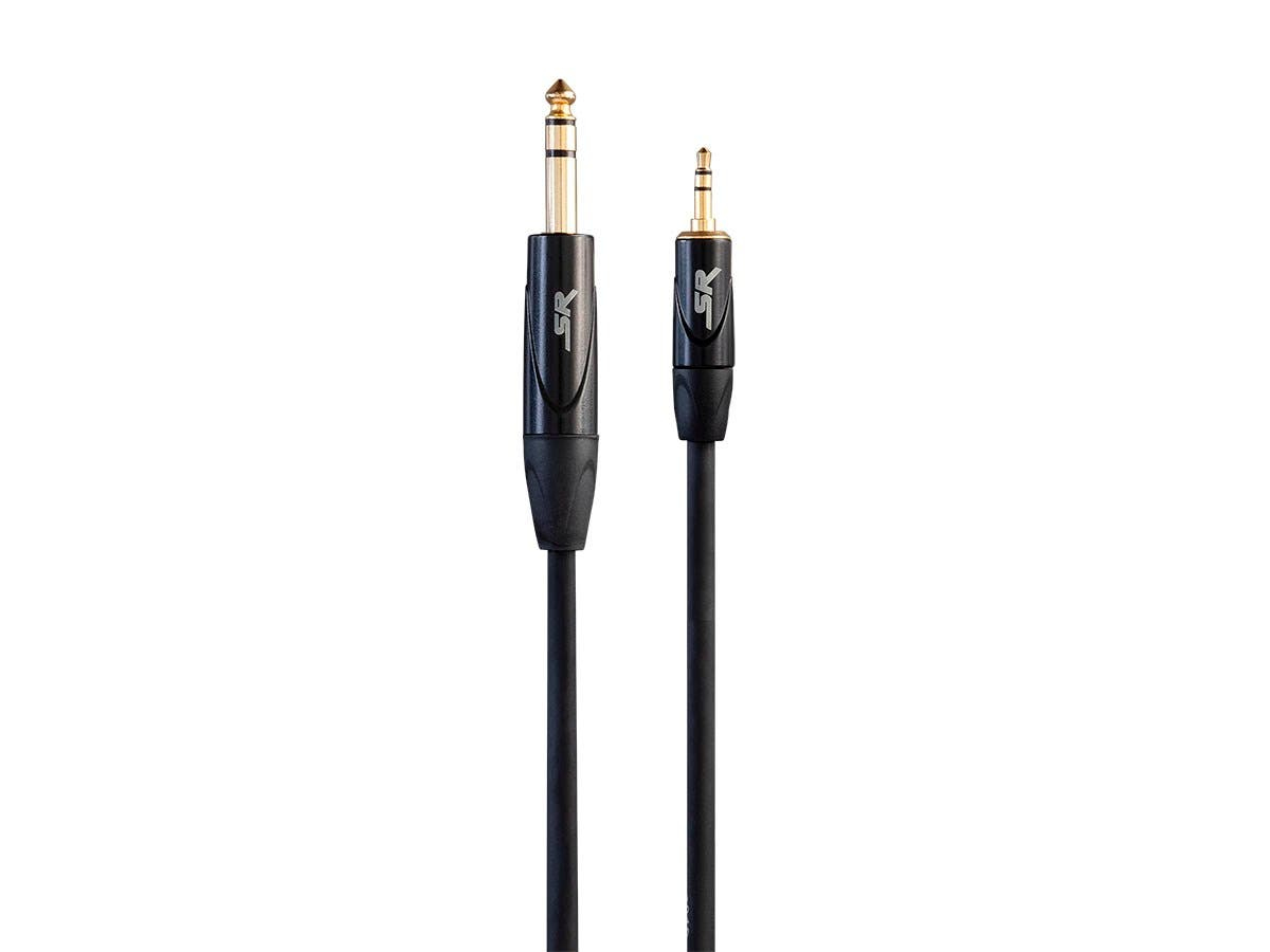 Stage Right by Monoprice On Tour Cables - 1/4in TRS Male Connector to 1/8in TRS Male Connector, 24AWG, Black, 6ft