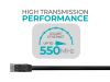 - Unshielded Twisted Pair (UTP) Category 6 Ethernet cable, 550MHz bandwidth