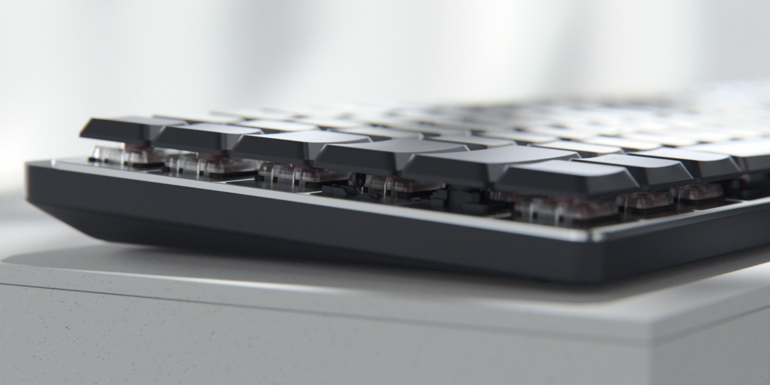 A next-level low-profile quieter mechanical typing experience with Tactile Quiet switches on a Mac key layout that offer a satisfying tactile bump you feel – for precise feedback, reactive key reset, and less noise.