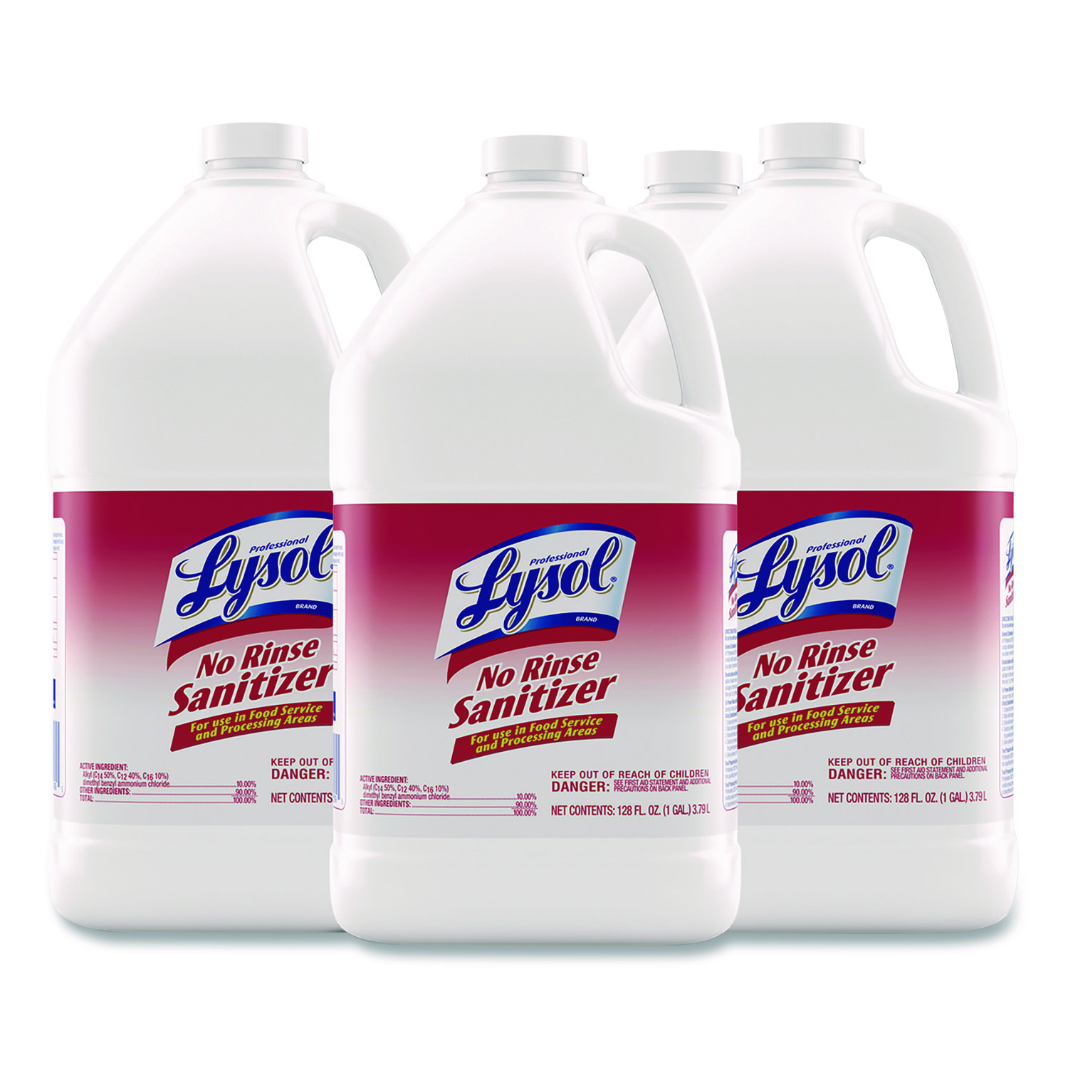 Optimize cleaning efficiency and meet high-volume sanitizing needs with Professional Lysol No Rinse Sanitizer Concentrate, ideal for use in food service and processing areas. Confidently uphold food code requirements with the no-rinse formula that's perfect for a 3-bin sink and clean-in-place applications. Effectively sanitize food and drink preparation and service areas, hospitals, nursing homes, physician offices, hotels, and more. Help staff keep commercial kitchens, storage areas, and restrooms sanitized. Save time and money with the economical, concentrated formula that can be diluted on-site for up to 512 gallons of sanitizing solution in eating establishment areas. Application: Disinfectant/Sanitizer; Applicable Material: Hard Non-Porous Surfaces; Chemical Compound: n-Alkyl (C14 50%, C12 40%, C16 10%) Dimethyl Benzyl Ammonium Chloride; Dirt Types: Food Based.