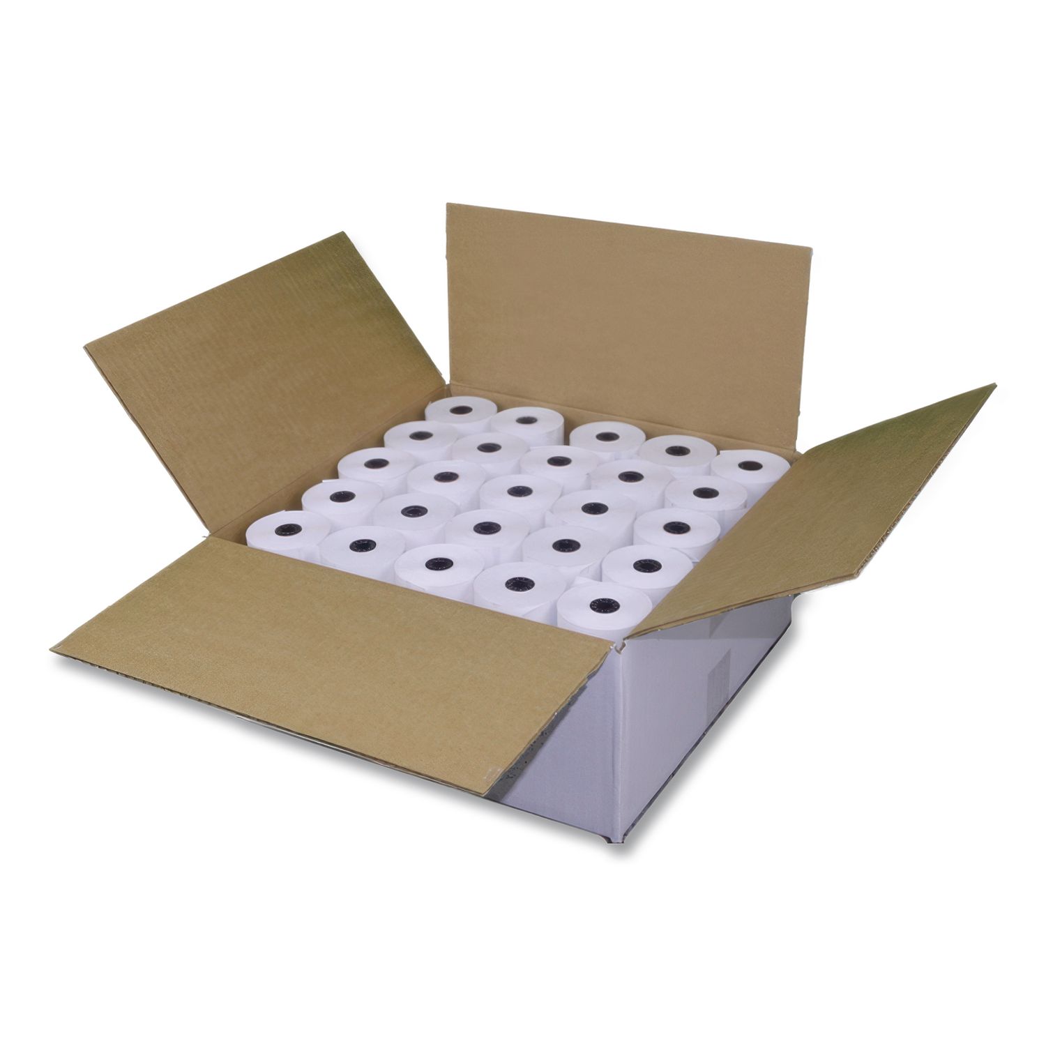These POS rolls are made from phenol-free thermal paper and are free from bisphenol A and bisphenol S. This paper provides quality image transfer with clear text and crisp, long-lasting imprint. Each roll has a warning stripe to indicate the end of roll. Sheet/Roll Size: 2.25" x 50 ft; Paper/Media Color(s): White; Color Family: White; Machine Compatibility: Adding Machines; Calculators; Cash Registers; POS Machines.