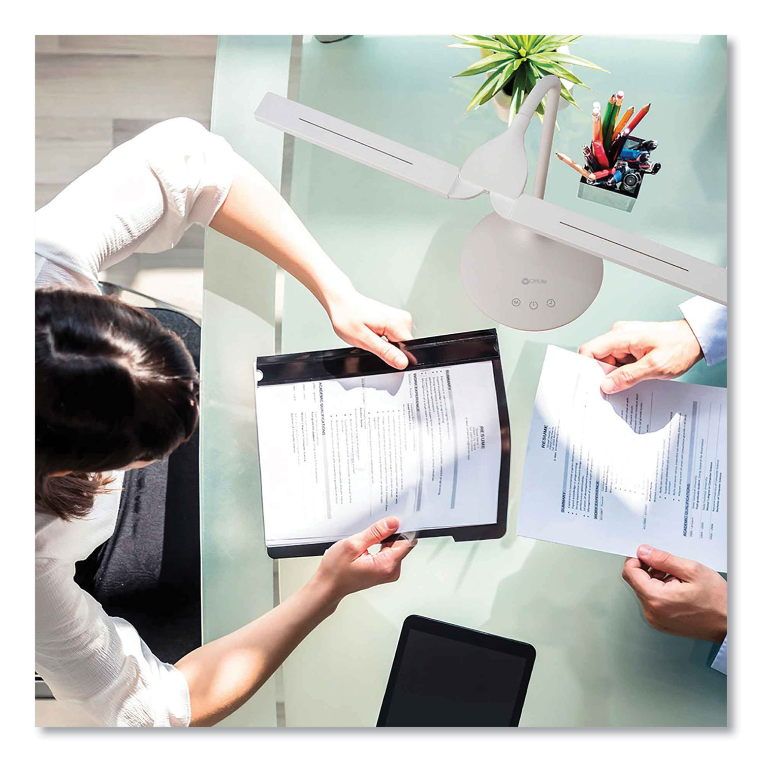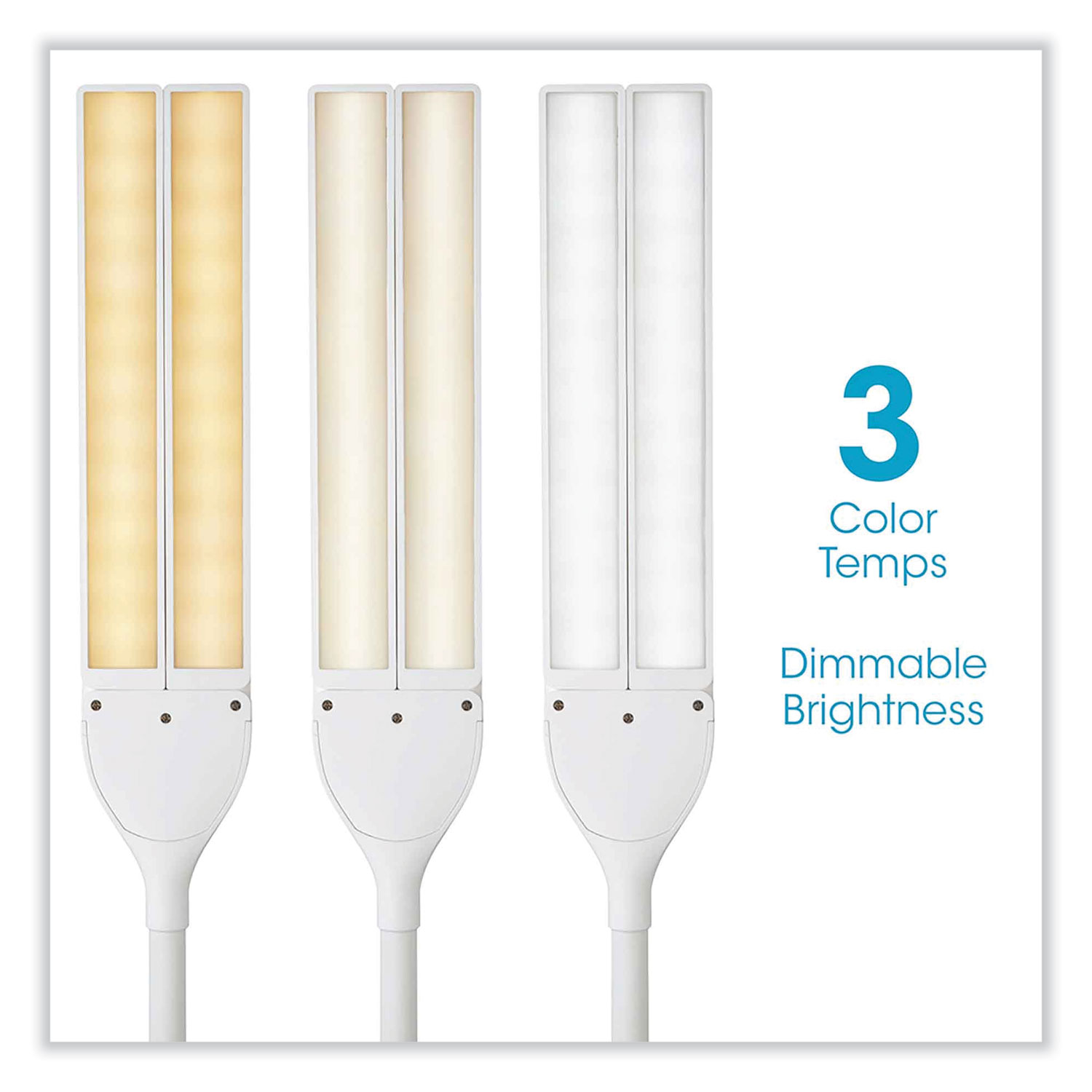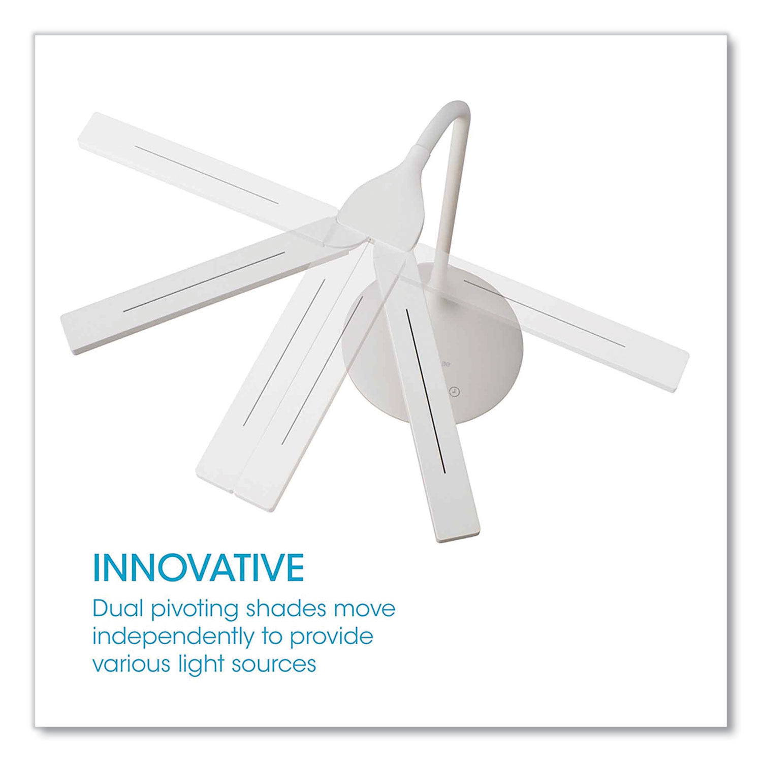 Create a customized lighting setup with this height-adjustable OttLite Pivot LED Desk Lamp with Dual Shades. Exclusive ClearSun LED technology optimizes illumination while helping reduce eyestrain by 51%. A color rendering index of 97 provides this dimmable OttLite pivot dual-shade LED desk lamp with outstanding color accuracy, and the three color modes with touch-activated controls enable easy adjustments. Base Color: White; Plug Type: 2 Prong; Height: 13.25" to 26"; Width: 6.75".