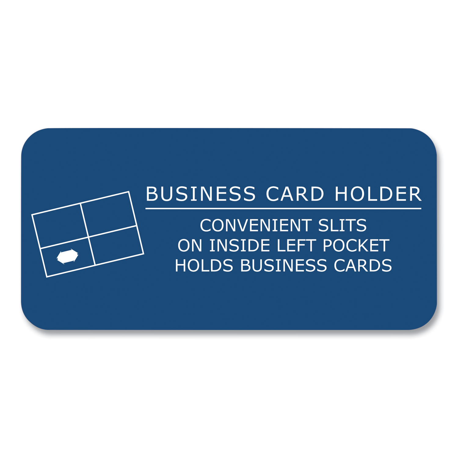 These folders have an embossed leatherette finish. The color is printed on durable white tag stock. Two inside pockets keep papers in place. Front Cover Color(s): White; Color Family: White; Back Cover Color(s): White; Sheet Size: 11 x 8.5.