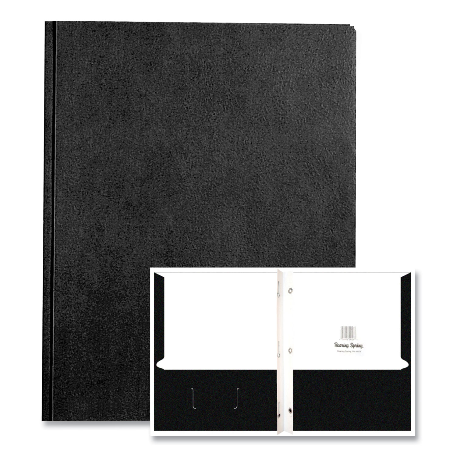 These folders have an embossed leatherette finish. Each folder has three prongs and eyelets for paper storage. Convenient inside pockets provide easy access. The color is printed on durable white tag stock. Colored outsides, inside surface is white. Front Cover Color(s): Black; Color Family: Black; Back Cover Color(s): Black; Sheet Size: 11 x 8.5.