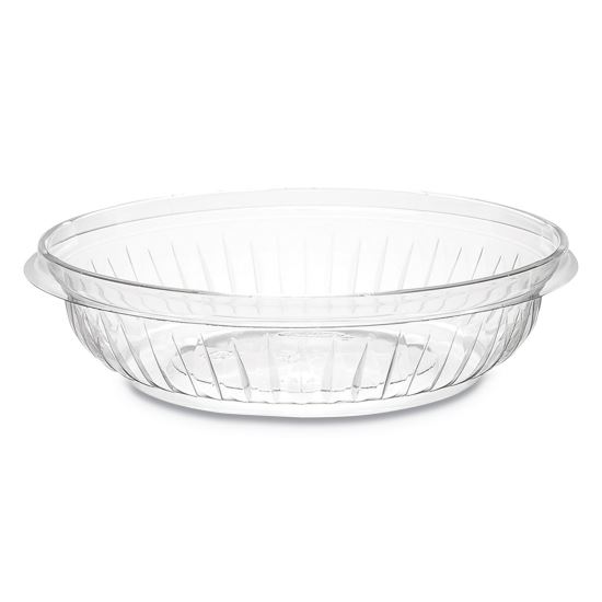 Clear bowls allow you to easily identify the product within. Elegant design on the bowls creates an upscale image. These bowls are also stackable, saving storage space. They're versatile, good for holding many different kinds of items including bakery and deli goods and produce. Food Container Type: Base; Material(s): PET - Polyethylene Terephthalate; Material Type: Plastic; Interior Volume Capacity: 8 oz.