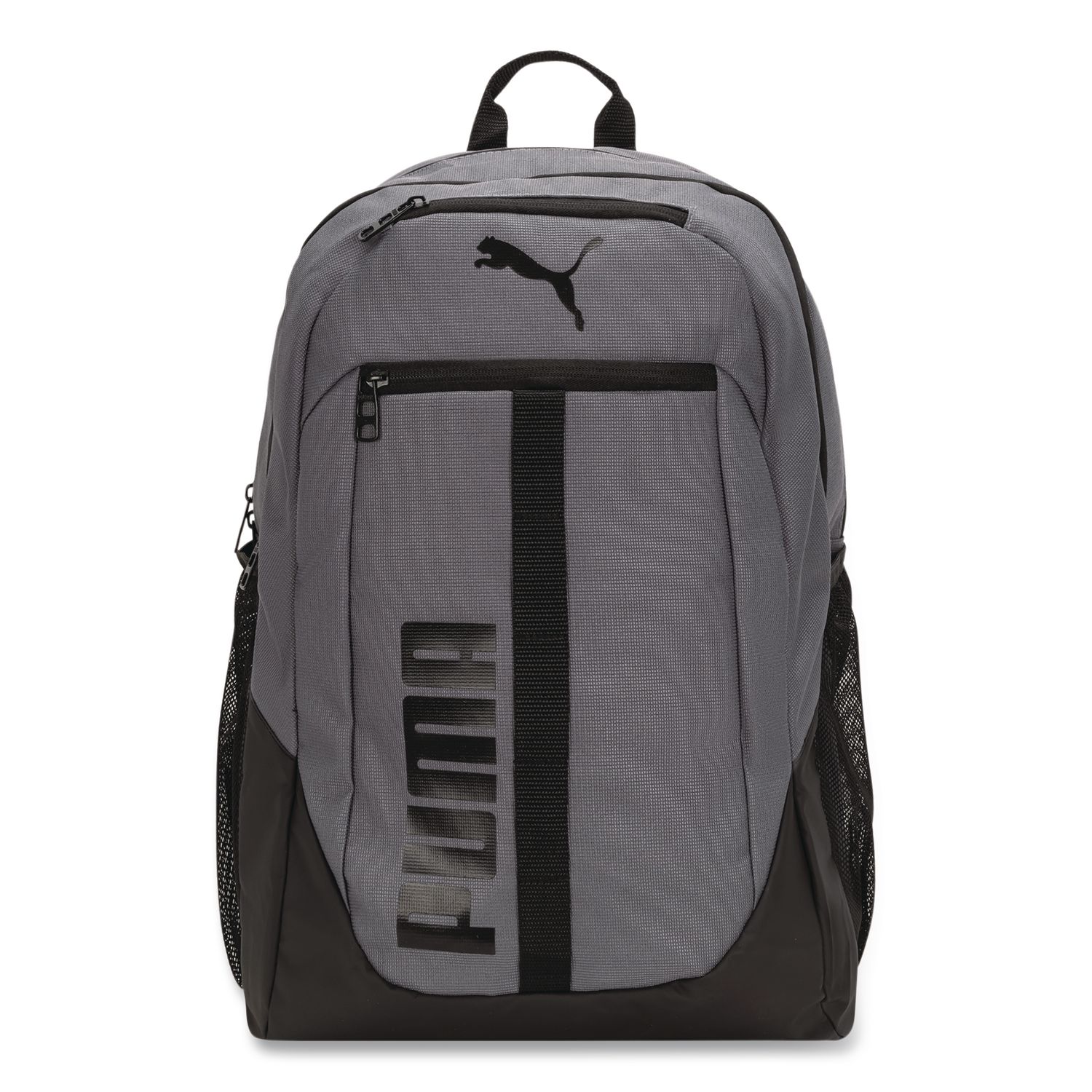Built with lots of practical pockets and a clever design, the PUMA Regenerate Backpack features ample padding to protect and store your devices with peace of mind. Comfortable straps make it easy to sling and wear this backpack to the office, classroom or wherever the day takes you. Color(s): Gray/Black; Color Family: Gray; Material(s): Poly; Carrying Handle: Yes.