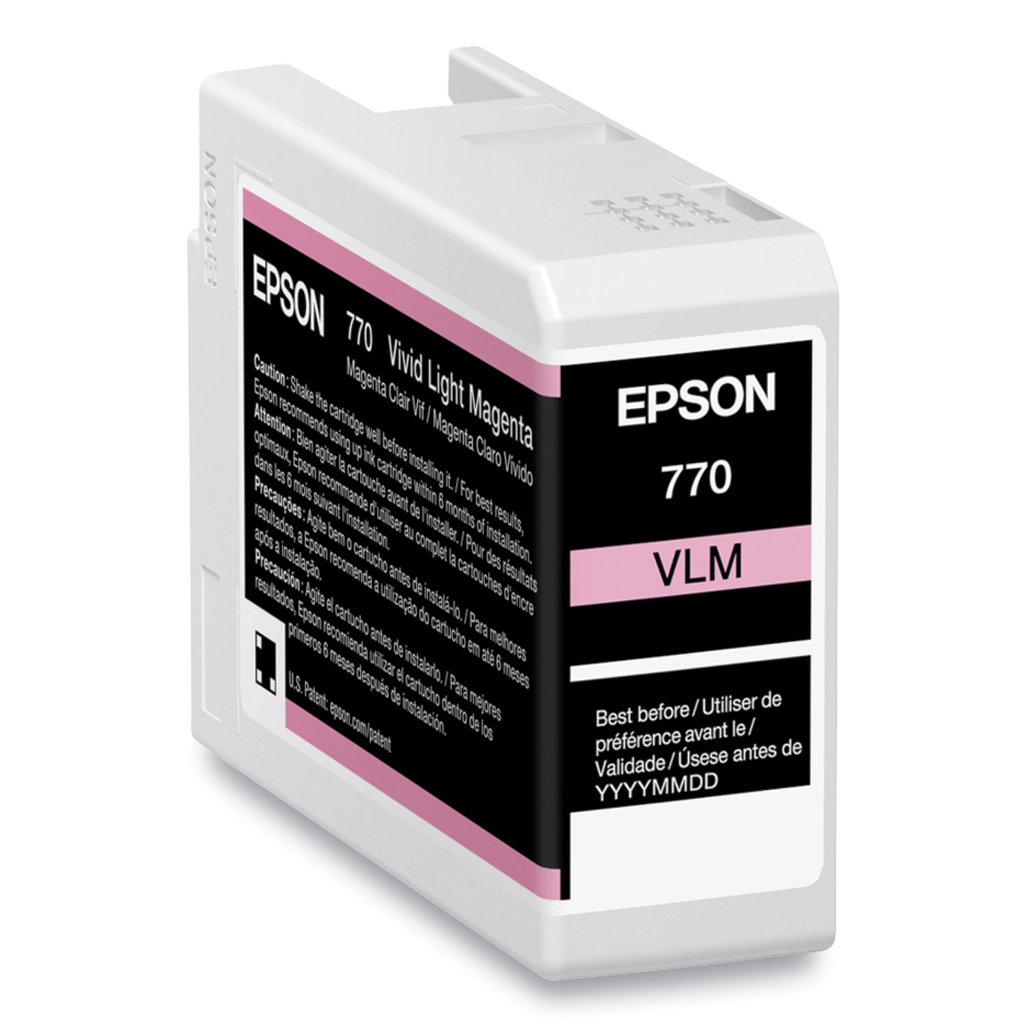 Replace only the cartridge that runs out with individual ink cartridges. Best of all, only one set of cartridges is needed to print amazing documents and great photos. There's no need to spend additional money on specialized cartridges to print on either plain or photo paper. Epson genuine ink produces prints that look brilliant on both plain and glossy photo paper. Device Types: Wide Format Inkjet Printer; Color(s): Light Magenta; Supply Type: Ink; Market Indicator (Cartridge Number): T770.