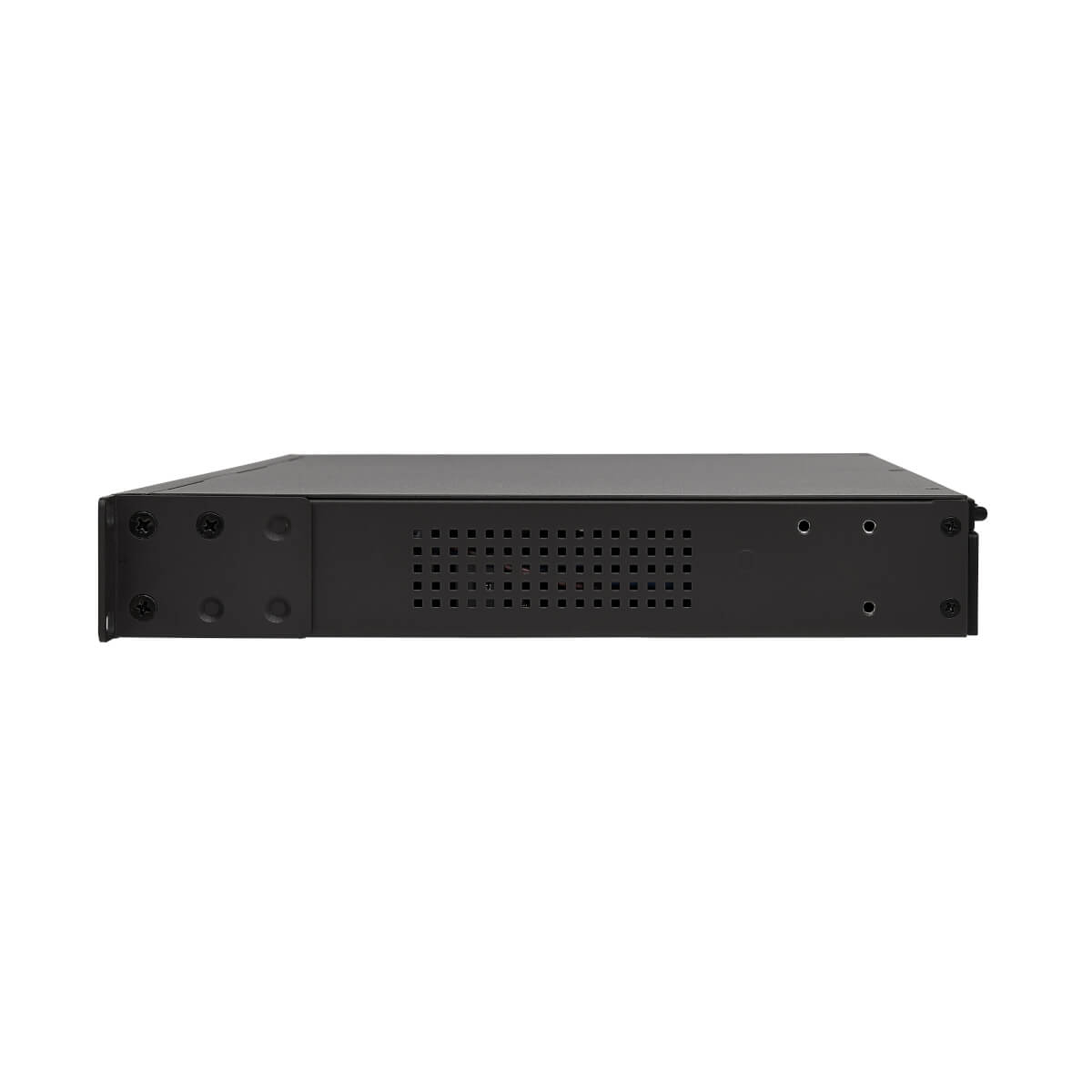 Compact Design for Convenient MountingThe heavy-duty steel housing comes with mounting brackets for 1U installation in an EIA-standard 19-inch rack. Its fanless form factor also allows desktop deployment on included rubber feet that help prevent the unit from sliding.