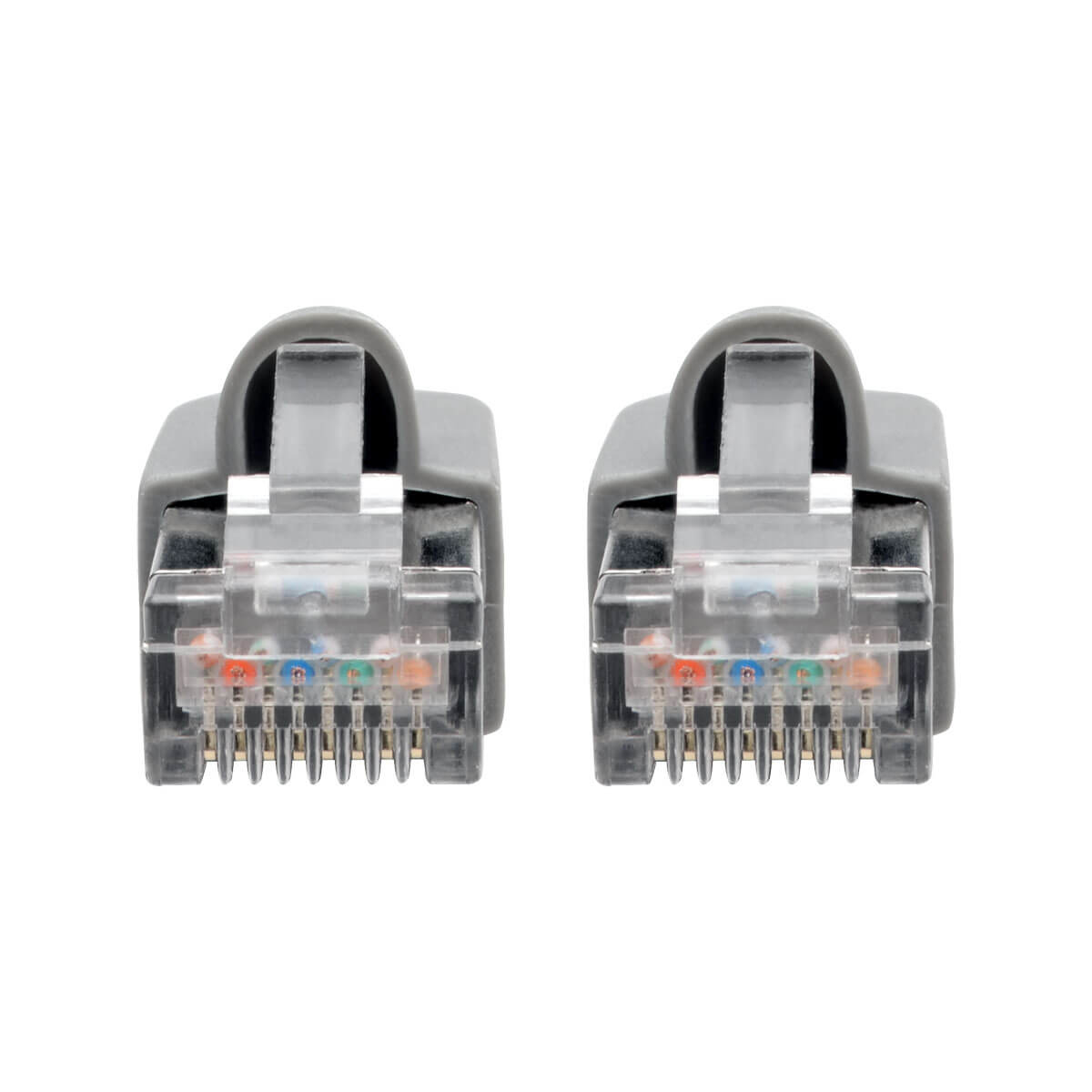 Manufactured from 26 AWG copper wire and protected by a rugged PVC jacket, the four-pair stranded N262-010-GY minimizes near-end crosstalk (NeXT) levels. The RJ45 connectors' snagless design protects the locking tabs from being damaged or broken off during installation. Integral strain relief with ridges on each end gives the cable extra flexibility, reduces stress, and helps the cable and connectors move freely without cracking.
