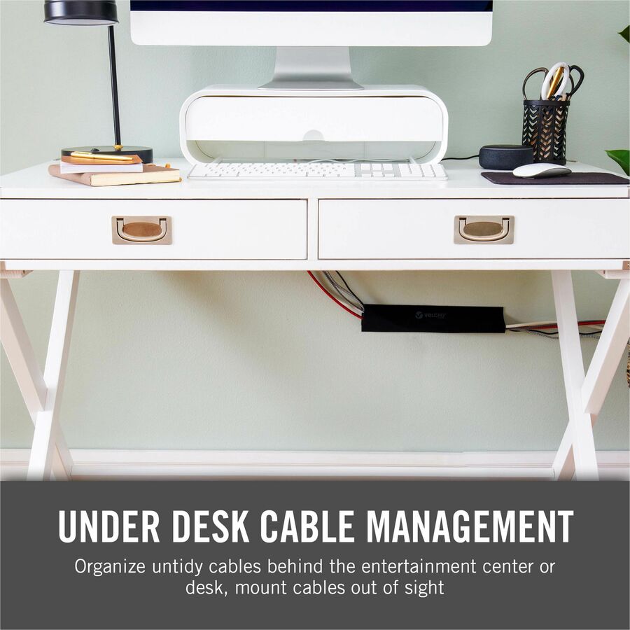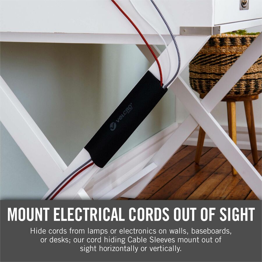 Use these Mountable Cable Sleeves to organize untidy cables behind the entertainment center or under your desk. Easily change out components while keeping the cables concealed. Mount sleeves horizontally or vertically for versatile use. Add or remove cables by simply pulling the sleeve open. Removable adhesive keeps sleeves attached to surfaces without needing to remove when changing cables out. Only use indoors for maximum effectiveness.