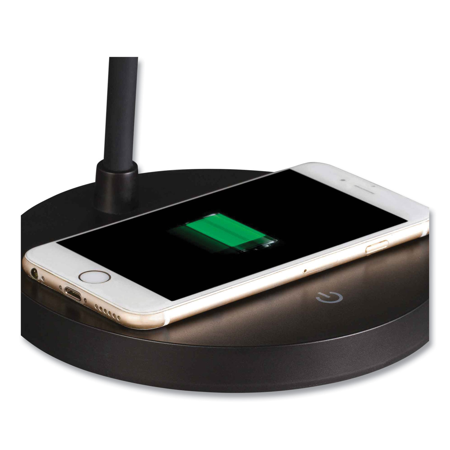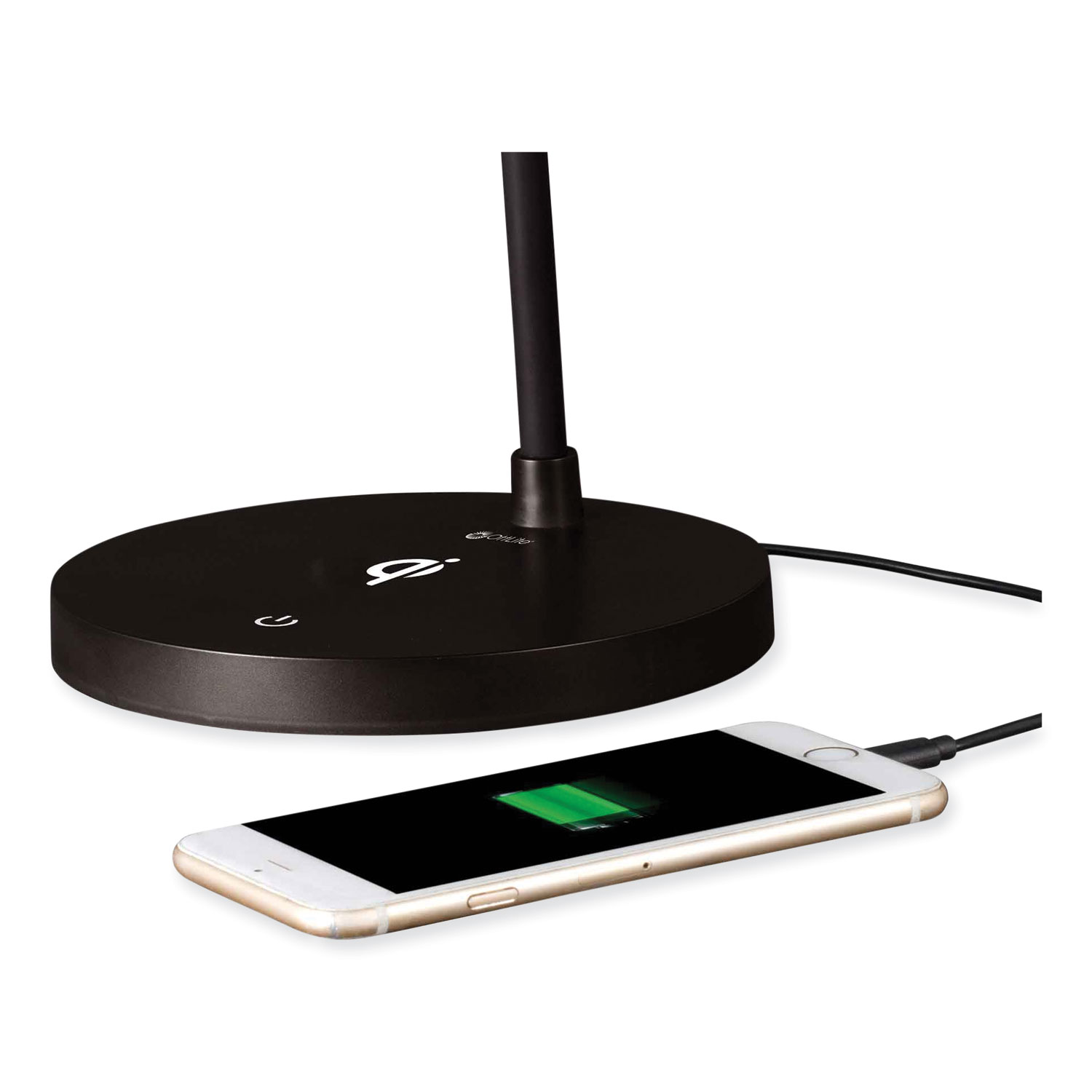 Qi wireless charging technology combined with OttLite ClearSun LEDs makes the Shine LED Desk Lamp an innovative and healthy choice for your desk. Break free from glare and eyestrain. The OttLite ClearSun LED is shown to reduce eyestrain by 51% making your time spent reading and working on the computer more comfortable and enjoyable. Plus, this lamp features the convenience and ease of wireless charging, simply place your phone on the lamp's base and charge. If you don't have a Qi-certified phone, no problem, use the powerful 2V. 5.1A USB port. Base Color: Black; Plug Type: 2 Prong; Height: 12" to 17"; Width: 6".
