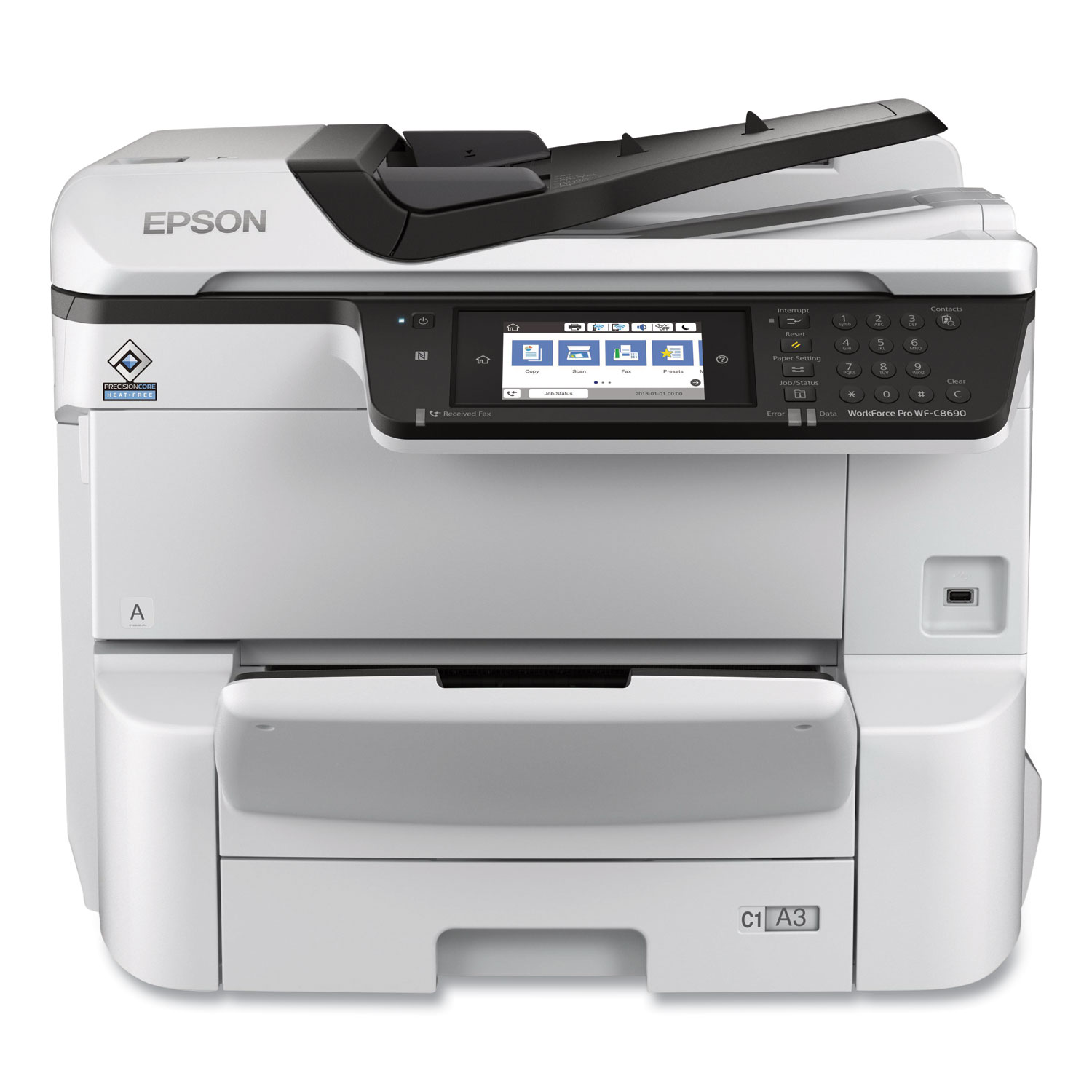 Powered by PrecisionCore Heat-Free® technology, the WorkForce® Pro WF-C8190 has the lowest power consumption in its class. Plus, it features auto duplexing for greater productivity. A true workhorse, the WF-C8190 offers print speeds of 24 ISO ppm (black/color) and a fast first page out. With a paper capacity up to 1,835 sheets, you'll replace paper less often. Ideal for busy workgroups, the printer also includes PCL and Adobe® PostScript® 3™ support, plus compatibility with ISV and third-party software solutions. Maximum Print Speed (Black): 24 ppm; Maximum Print Speed (Color): 24 ppm; Print Resolution (Black) (Width x Height): 4800 x 1200 dpi; Print Resolution (Color) (Width x Height): 4800 x 1200 dpi.