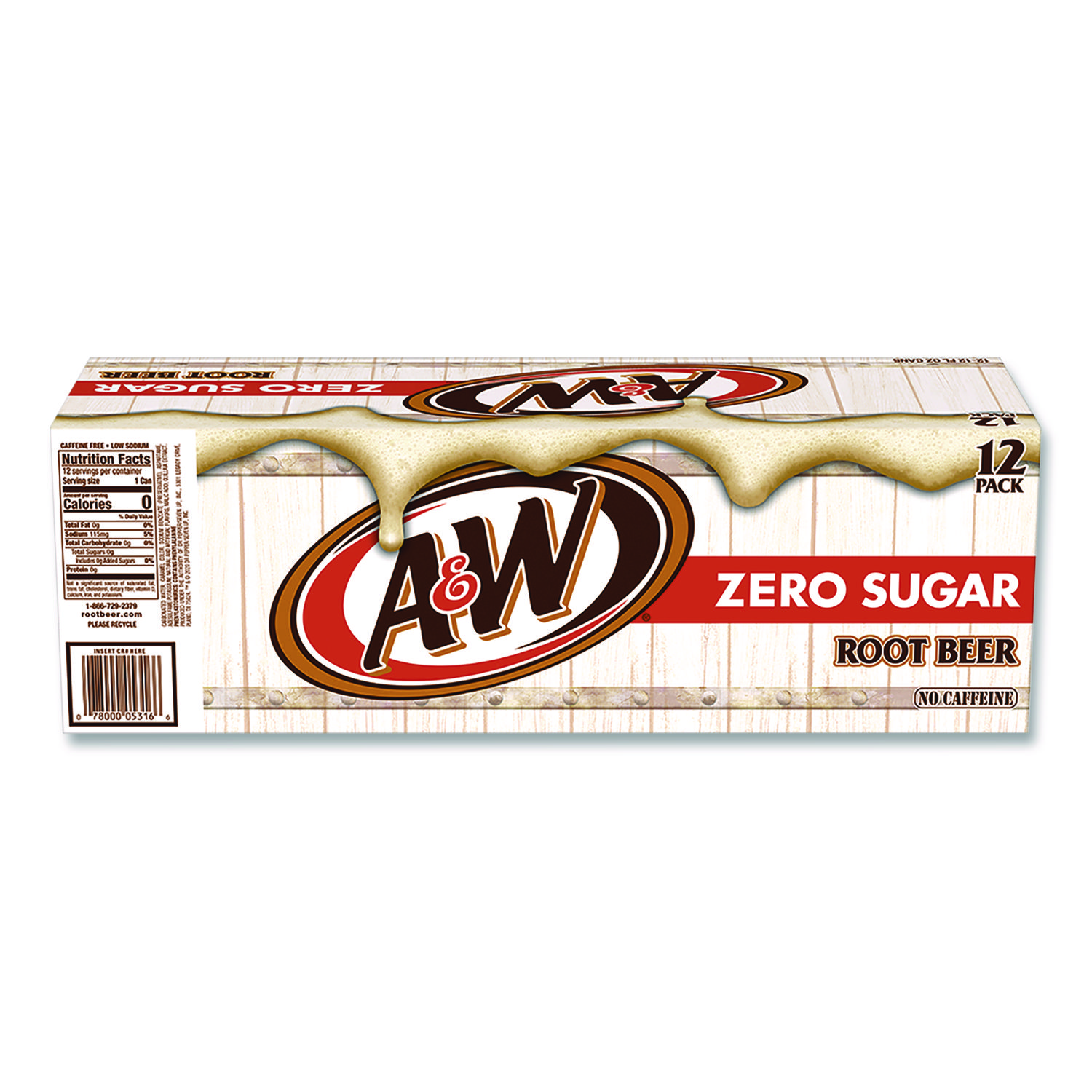 Appreciate the refreshing taste of this delicious soda. It's caffeine-free, so you can drink it at any time of the day or night, and the aged vanilla flavor provides a classic taste experience. Zero Sugar A&W root beer is low in sodium, so you can savor it as you watch your dietary restriction. Beverage Type: Soft Drink; Flavor: Vanilla; Product Packaging: Can; Volume Capacity: 12 oz.